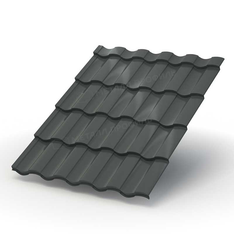 Металлочерепица с профилем Монтекристо-ML толщиной 0,5 мм и покрытием PURETAN® в цвете RR 23 (темно-серый) от компании Металл-Профиль представляет собой надежный и эстетичный материал для кровли. Это сочетание прочности, долговечности и современного дизайна, подходящее для частных домов, коммерческих зданий и других объектов. Покрытие обеспечивает защиту от коррозии, а профиль имитирует натуральную черепицу, добавляя элегантности внешнему виду крыши.